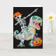 Skeleton Riding Dancing Dab Dinosaur T Rex Hallowe Card
