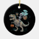 Skeleton Riding Dinosaur T rex Halloween Pumpkin Ceramic Ornament