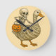 Skeleton Riding Mum Goose Halloween Funny Pumpkin Round Clock