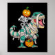 Skeleton Riding Mummy Dinosaur T Rex Halloween Fun Poster