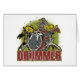 The perfect gifts for the hard rock, heavy metal or punk rock drummer! Skeleton with spiked hair bashing a set of skull and bones drum! Large DRUMMER with green halftone background! Insane and edgy drummer tees and gifts for the musicians!
