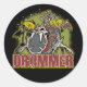 The perfect gifts for the hard rock, heavy metal or punk rock drummer! Skeleton with spiked hair bashing a set of skull and bones drum! Large DRUMMER with green halftone background! Insane and edgy drummer tees and gifts for the musicians!