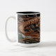 skeleton rode his chopper bike down trail Two-Tone coffee mug