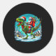Skeleton Santa Riding T Rex Dinosaur Funny Christm Classic Round Sticker