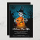 Halloween party invitations feature a spooky skeleton in a hop hat holding a scary jack o' lantern on a dark Halloween night. Fun for Halloween costume party invitations, scary kid's birthday party invitations, adult Halloween costume party invitations, just change the wording to fit your occasion. MATCHING items in our store.