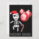 Skeleton with candy cane, santa hat holiday card