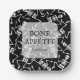 Skeletons on a black background and BONE APPÉTIT in chic lettering, these square paper plates (in 2 sizes) are fun for your Halloween party or Halloween birthday party. MATCHING items in our collection.