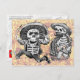 Skeletons with machete and booze postcard