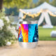LGBTQIA+ Two Skeletons cuddling under a blanket with a rainbow background.