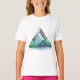 Sketch lines, a geometric triangular mountain landscape with a gradient of blue, green, and grey tones, pencil drawing