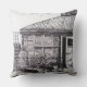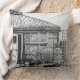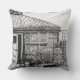 The original little drawing on this throw pillow is a stylised sketch of a little black dog (seen in the lower right hand corner) laying amongst the plants and pots of the garden, behind the trellis fencing is a water butt and justtothe left you can see the open door tothe conservitory. This drawing was done in the moment and that's what gives it the original sketchy natural style.