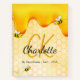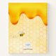 Yellow, white background with a bee honeycomb pattern and happy smiling bumble bees. Decorated with sweet, golden honey dripping. Personalise and add your name, monogram initials, and a title golden and black letters. The name is written with a hand lettered style script.