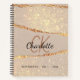 An elegant beige and gold agate, marble looking background. Personalise and add your monogram initials, name and a title. Black text. For sketching, drawing, taking notes