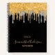 Sketchbook black gold silver glitter drips name notebook