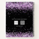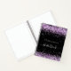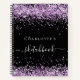 Black background. Purple, violet faux glitter dust. The title: sketchbook written with a girly modern hand lettered style script with swashes. White coloured letters. A notebook for drawings, sketching, notes and school homework.