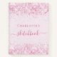 A blush pink background decorated faux glitter dust. The title: sketchbook written with a girly modern hand lettered style script with swashes. Pink coloured letters. A notebook for drawings, sketching, notes and school homework.