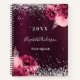 A deep burgundy gradient background decorated with faux silver glitter, sparkles and burgundy and blush pink florals. Personalise and add a year, name and a title/text.