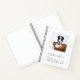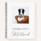 An elegant white background. Personalise and add your own photo of your dog or pet. Add your name and a title. The title is written with a modern hand lettered style script. Black coloured letters. A notebook for sketching your dog, taking notes or for school homework.