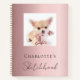 A girly pink gradient background. Personalise and add your own photo of your dog or pet. Add your name and a title. The title is written with a modern hand lettered style script. Black coloured letters. A notebook for sketching your dog, taking notes or for school homework.