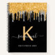 Sketchbook glitter monogram black gold silver chic notebook