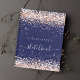 Navy blue background. Rose gold, blush confetti. The title: sketchbook written with a girly modern hand lettered style script with swashes. White coloured letters. A notebook for drawings, sketching, notes and school homework.