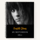 A chic black background. Personalise and add your own photo, a name and text. White and golden text. Sketch interior as default, but you can change it to be a notebook as well.