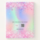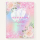 A trendy holographic coloured background with unicorn and rainbow pastel colours in pink, purple, rose gold, mint green. Decorated with faux glitter in pink, white balloons and florals. Personalise and add a name, the name is written with a girly modern hand lettered style script with swashes. To keep the swashes only delete the sample name, leave the spaces or emoji's in front and after the name.