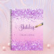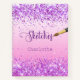 A pink gradient background. Decorated with pink confetti. Personalise and add a name, The title: sketchbook written with a girly modern hand lettered style script with swashes and a brush. Purple coloured letters. A notebook for drawings, sketching, notes and school homework.