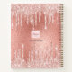 A rose gold faux metallic looking background. Decorated with faux glitter drips in blush pink. Personalise and add a name, The title: sketchbook written with a girly modern hand lettered style script with swashes. A notebook for drawings, sketching, notes and school homework.