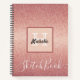 Girly and elegant. A rose gold gradient faux glitter pattern. Personalise and add your name. A frame with space for your name and monogram letter. White and black letters. Custom title: Sketchbook. To keep the swashes in the title, only delete the sample text, leave the spaces or emoji's in front and after the text.