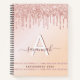 A stylish girly and feminine rose gold and blush pink gradient background decorated with rose gold faux glitter drips, paint dripping look. Personalize and add your name, monogram letter and a title. The title inside the faux glitter ribbons. The name is written with a large trendy hand lettered script with swashes. To keep the swashes only delete the sample name, leave the spaces or emoji's in front and after the name. Rose gold colored text.