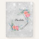 A faux silver looking background. Decorated with faux glitter. A geometric shaped heart decorated with pink flowers and greenery. Personalise and add a name. The name is written with a modern hand lettered script. Perfect for school homework, back to school.