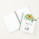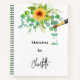 A white background. Decorated with sunflowers, eucalyptus greenery, a paint brush. Personalise and add a title and name. Black coloured letters. The name is written with a modern hand lettered signature style script. A notebook for drawings, sketching, notes and school homework.