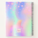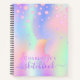 A trendy iridescent coloured background with unicorn and rainbow pastel colours in pink, purple, rose gold, mint green. Decorated with pink faux diamonds and a rainbow coloured unicorn. Personalise and add a name. The title: Sketchbook is written with a trendy hand lettered script with swashes. To keep the swashes only delete the sample name, leave the spaces or emoji's in front and after the name.