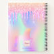A trendy iridescent colored background with unicorn and rainbow pastel colors in pink, purple, rose gold, mint green. Decorated with faux glitter drips in rose gold, pink, purple and a rainbow colored unicorn. Personalize and add a name. The title: Sketchbook is written with a trendy hand lettered script with swashes. To keep the swashes only delete the sample name, leave the spaces or emoji's in front and after the name.