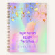 A trendy holographic coloured background with unicorn and rainbow pastel colours in pink, purple, mint green. Decorated with dripping stars and a rainbow coloured unicorn. Personalise and add a name. Text; Draw dreams. Design the future.