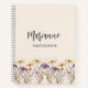 A beige coloured background. Decorated with yellow and purple wildflowers. Personalise and add your name and a title. Grey handwritten style script.