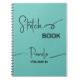 Personalised Teal Aqua Blue Black Sketchbook with Your Name in Elegant Handwritten Script Font Typography