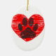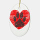 Sketched Dog Paw In Red Heart Ceramic Ornament
