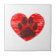 Sketched Dog Paw In Red Heart Ceramic Tile