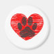 Sketched Dog Paw In Red Heart Magnet