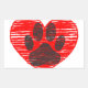 Sketched Dog Paw In Red Heart Rectangular Sticker