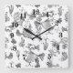 Sketched fairy fantasy fishes creachers plants sea square wall clock
