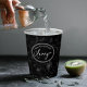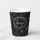 A beautiful pattern of hand drawn flower outlines in shades of gray on an optional black background is used to create the pieces of this modern collection. The striking paper cup for any occasion is shown here featuring elegant handwritten script text and a template to add your name and/or other message on a black background. Search ID939 to see all the products in this design set.