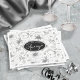 A beautiful pattern of hand drawn flower outlines in shades of gray is used to create the pieces of this modern collection. The striking paper napkin for any occasion is shown here featuring elegant handwritten script text and a template to add your name and/or other message on a black background. Search ID939 to see all the products in this design set.