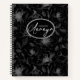 A beautiful pattern of hand drawn flower outlines, in shades of grey on an optional black background, is used to create the pieces of this modern collection. The striking notebook shown here also features elegant handwritten script text in white on a black label. Search ID939 to see all the products in this design set.