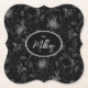 A beautiful pattern of hand drawn flower outlines, in shades of grey on an optional black background, is used to create the pieces of this modern collection. The striking paper coaster shown here also features optional handwritten script text in white on a black background. Search ID939 to see all the products in this design set.