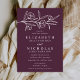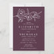 Elegant floral wedding invitations featuring white sketched flowers and leaves near the top of the invite with a plum purple background. Personalise the botanical wedding invitation with your names and wedding details below in classic white lettering. Designed to coordinate with our Sketched Floral wedding collection.