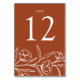Elegant floral table number cards featuring white sketched flowers and leaves near the bottom of the design with a terracotta background. Personalise the sketched floral table cards with the table number in classic white lettering. To order the table cards, edit and add each number to your cart individually, then check out when you're finished. Designed to coordinate with our Sketched Floral wedding collection.