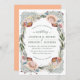 A unique take on floral wreath with touches of peach and maroon over a white background (customise the background colour to any of your choice); original illustration by Becky Nimoy.